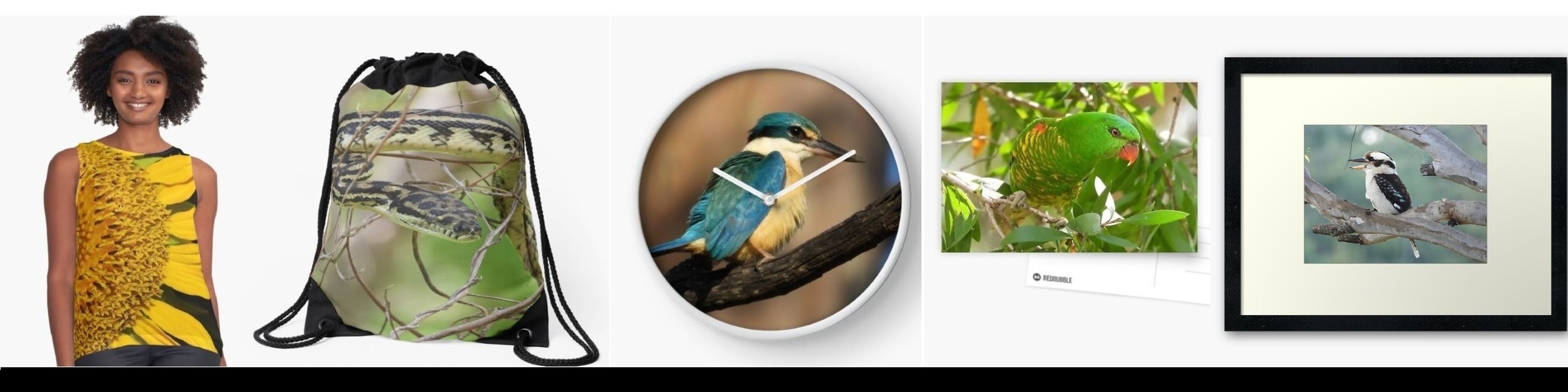 My graphic art for sale on the Redbubble site. Please browse through my site. Link below. Some samples of my art are below. This art is sold on many products (using my photos).